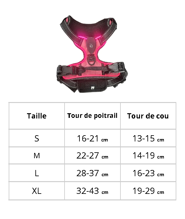Harnais lumineux réglable, pour plus de sécurité et de visibilité lors des promenades nocturnes. Confortable et facile à mettre, il protège votre compagnon tout en restant pratique. Boucles solides et matériaux résistants pour un usage quotidien sûr.