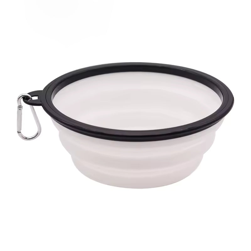 Gamelle portable pliable en silicone, parfaite pour hydrater ou nourrir votre animal en déplacement, équipée d’un mousqueton, elle s’accroche facilement au sac ou à la laisse.
